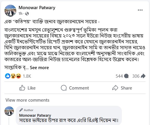 তথ্য সুত্র: মনোয়ার পাটোয়ারীর ফেসবুক পোস্ট
